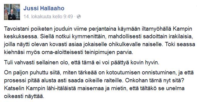 Kauppakeskukseen ei pakolainen saa mennä. Kampin kauppakeskuksessa nuorten tyttöjen on nähty menevän juttelemaan pakolaismiesten kanssa. Lähestymiskielto tarkoittaa tietysti myös sitä, että ei tule tyrkyttäytyä lähestyttäviksi.