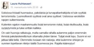 Laura Huhtasaari terrorismista