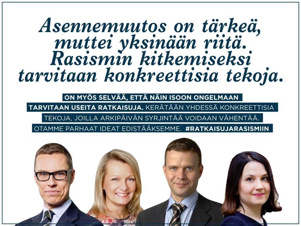 Kokoomus, rasismin kitkemiseksi tarvitaan konkreettisia tekoja