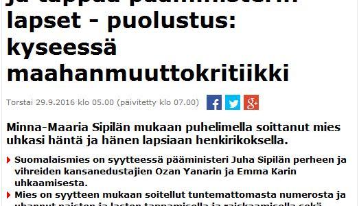 Tänään on julkaistu uutinen, jossa kerrotaan, että maahanmuuttokritiikkiä on saanut nyt vastaanottaa myös pääministerin puoliso.