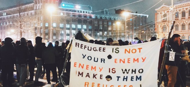 Jos pakolainen järjestää kohtelustaan mielenilmauksen, hänestä tulee anarkisti ja yhteiskunnan vihollinen. Samoin käy suomalaisille vapaaehtoisille, joilla vielä on rakkautta ja myötätuntoa. He koittavat auttaa kunnon ihmisiä, joilla ei näytä olevan tulevaisuutta tai edes elämää. Ministerit ehdottavat lakia, jonka nojalla auttaminen kielletään.