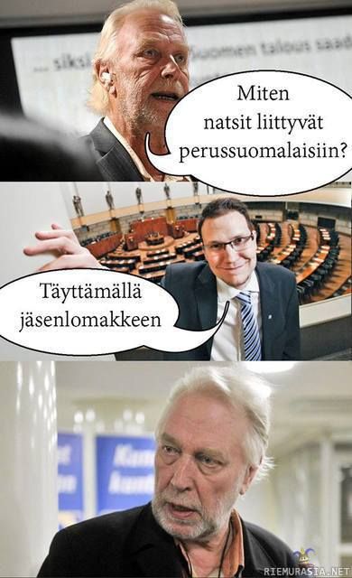Vaikka perussuomalaiset kuinka tekisivät kunnanvaltuustoissa ihan normaalejakin avauksia kunnan asioista, kaikki tapahtuu vain oheis- ja peitetoimintana puolueen rasistisen ohjelman edistämiseksi. Jokainen kunniallinen ihminen, joka haluaa edistää kunnan ja kuntalaisten hyvinvointia voi valita puolueekseen jonkun muun kuin perussuomalaiset. Miksi jotkut ihan mukavan tuntuiset tyypit valitsevat rasistipuolueen?