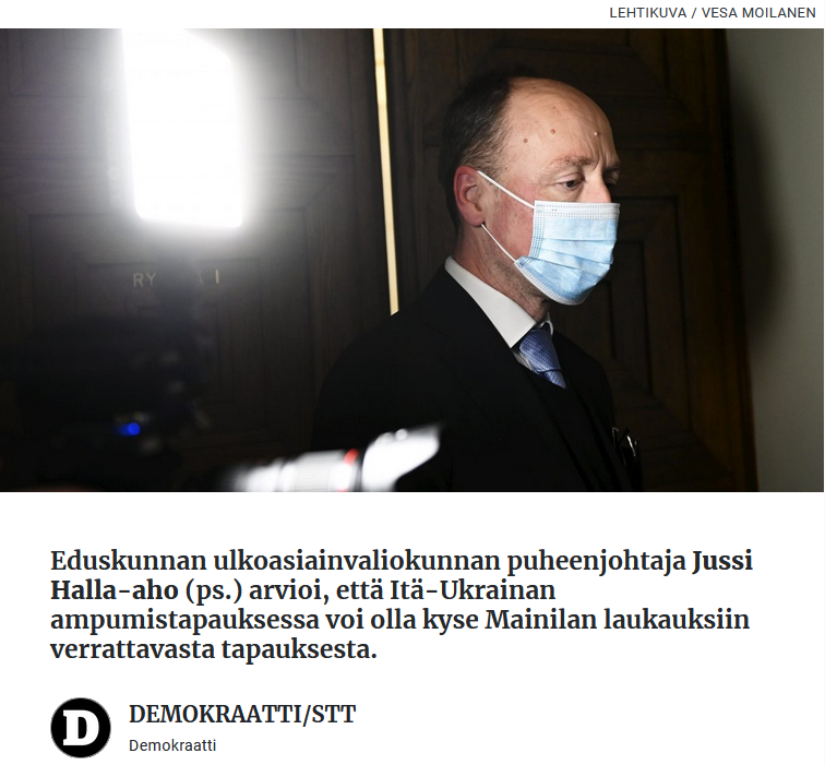 Nyt näyttää kuitenkin paremmalta, kun Ukraina on ahdingossa, niin surullista kuin se onkin. Konservatiivipoliitikot Petteri Orpoa myöten pitävät eduskunnassa puheita Ukrainan puolesta, itku kurkussa ja suurta myötätuntoa osoittaen. En ole koskaan kuullut moista intohimoa vaikkapa Irakin tai Syyrian lasten puolesta.