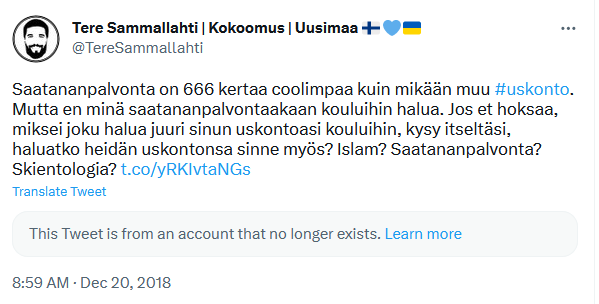 Kuka sitten oli tuo kokoomuksen banderollipoika Hyvinkäällä? Tere Sammallahti, vakiovieras Marja Sannikan ja Sanna Ukkolan persumyönteisissä haastatteluohjelmissa. Kokoomuksen rattaille tarvitaan TV:stä tuttuja tekijöitä. Sammallahti on myös yksi Twitterin räyhäkän vihapuhetilin, Päivän Byrokraatin kirjoittajista.