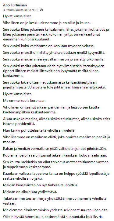 Juuri nyt, kun vaaleissa on sosiaalisella medialla koronan vuoksi entistä suurempi merkitys, siellä käyty keskustelu on yhä tärkeämpää. Satunnaisellekin kävijälle on näytettävä, millaista väkeä ja millaisella agendalla suomalaiset eduskuntapuolueet ovat värvänneet pyrkimään kuntapäättäjiksi. Perussuomalaisilla ei johtajansa esimerkin mukaan usein ole edes tarkoitus saada kuntiin asiallisia toimijoita, vaan häiriköitä, hidastajia ja rasistisen aatteen levittäjiä.